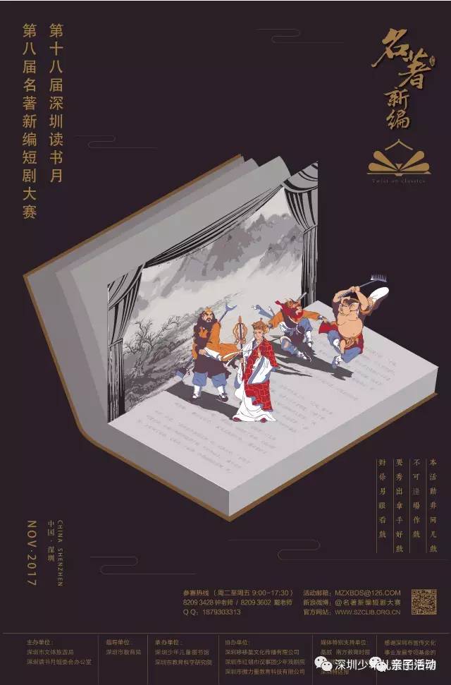 ②網(wǎng)上報(bào)名:在深圳少年兒童圖書(shū)館官方網(wǎng)站第七屆名著新編短劇大賽活動(dòng)頁(yè)面下載《報(bào)名表》,并在截止日前填好發(fā)送至活動(dòng)指定郵箱 MZXBDS@126.COM。